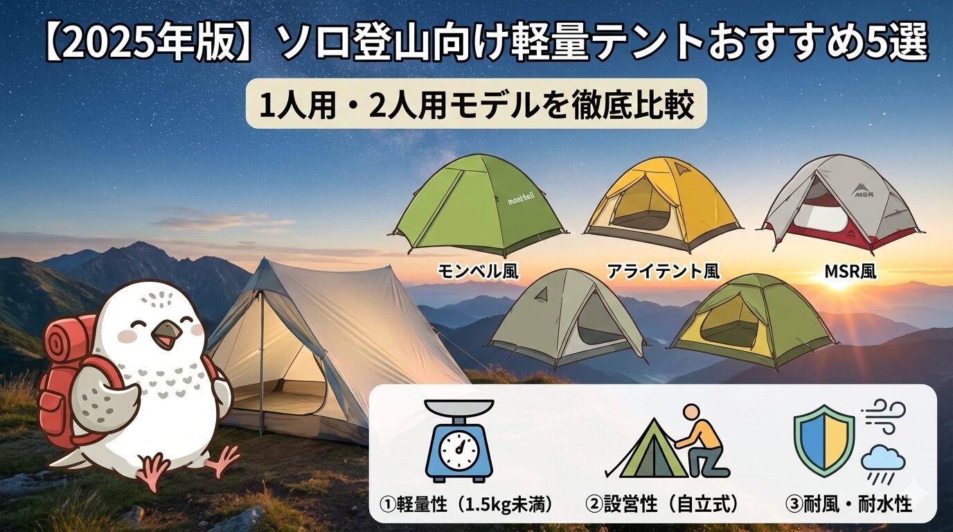 この記事では、1人用・2人用のソロ登山向けテントの中から、信頼性が高く多くの登山者に支持されているモデルを厳選してご紹介します。