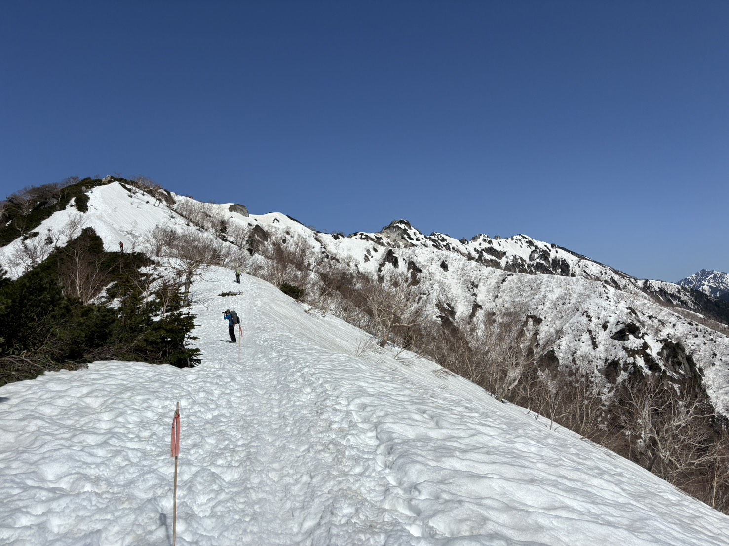 これに遭遇すると、登山靴のグリップ力だけでは太刀打ちできません。ここでチェーンスパイクがないと、手すりにしがみついて半泣きで降りることになります(経験者は語る…)。