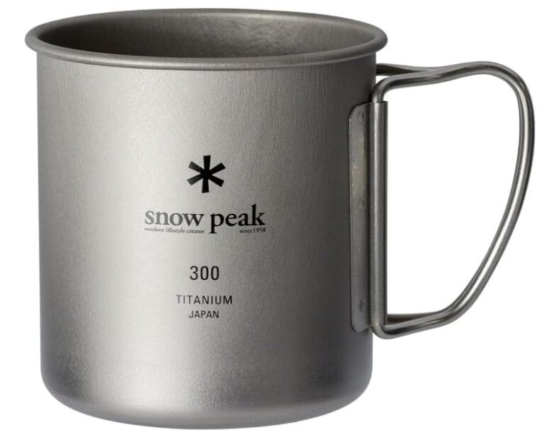 ここでこだわりたいのが、軽くて丈夫なチタン製マグカップ(Snow Peakなどがおすすめ)。