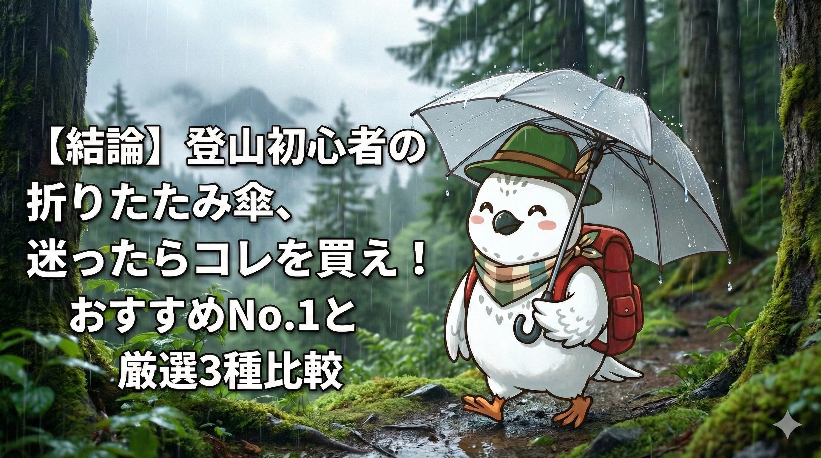 まずはモンベルの『U.L.トレッキングアンブレラ』を手に取り、近所の低山で雨の日ハイクを試してみてください。きっと、「なんでもっと早く買わなかったんだろう」と思うはずです。